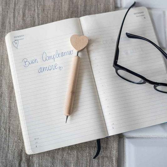Penna in legno a forma di cuore
